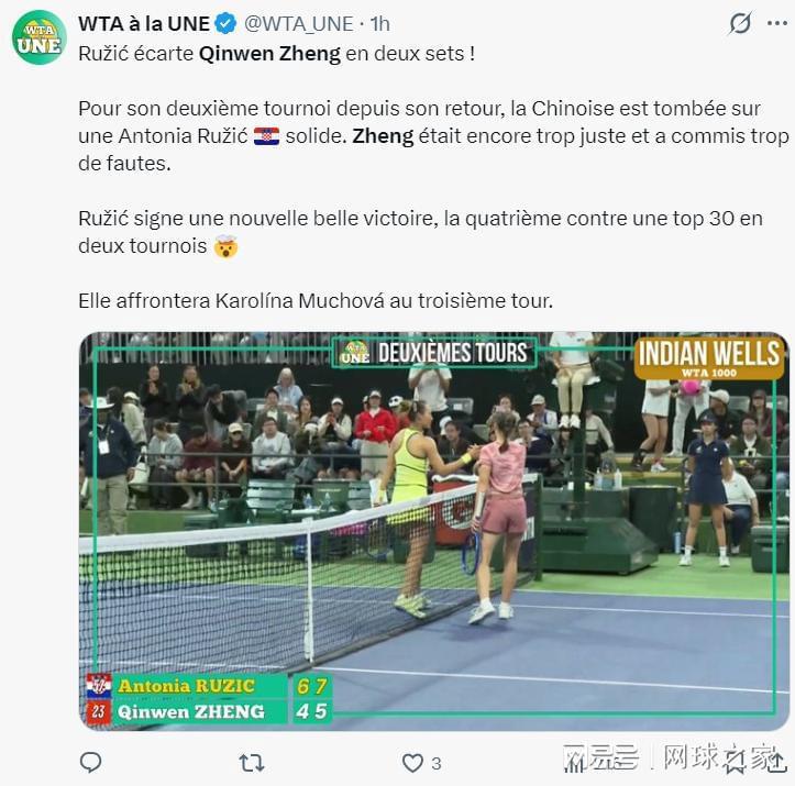 郑钦文在印第安维尔斯1000赛首秀演砸,折在鲁季奇的拍下后,也让中国金花军团在新赛季的单打赛场创下了最差战绩,从资格赛一路输到正赛,且全部都是一轮游。